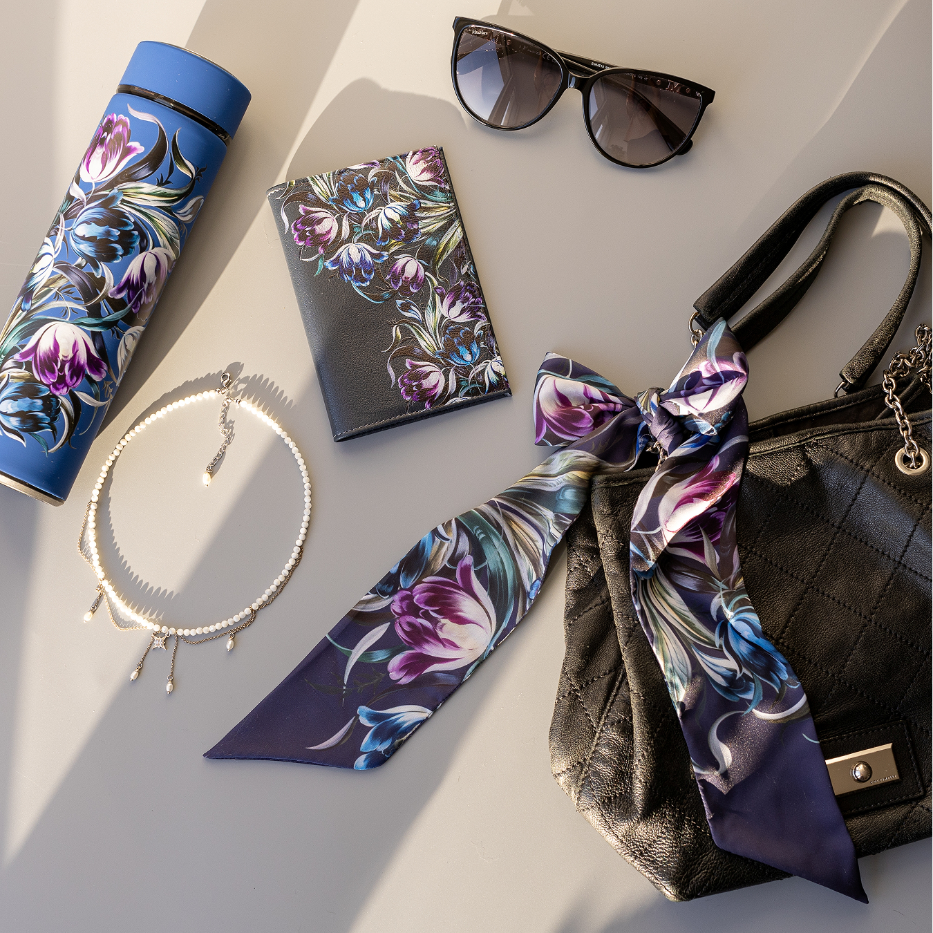 Для принта использован фрагмент росписи с уникального подноса художника Натальи Фроловой.