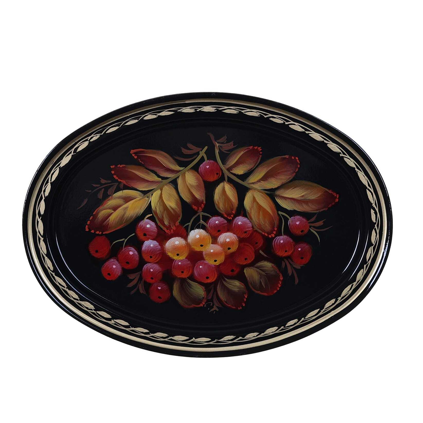Жостовский поднос A2D171224184, Автор Савина Татьяна, Материал: Металл, Форма Овальная, Фон Черный, Сюжет Рябина, Размер 17х12 см, Вес 0.12 кг, В комплекте: Фирменный полиэтиленовый пакет, Производитель: Жостовская фабрика декоративной росписи