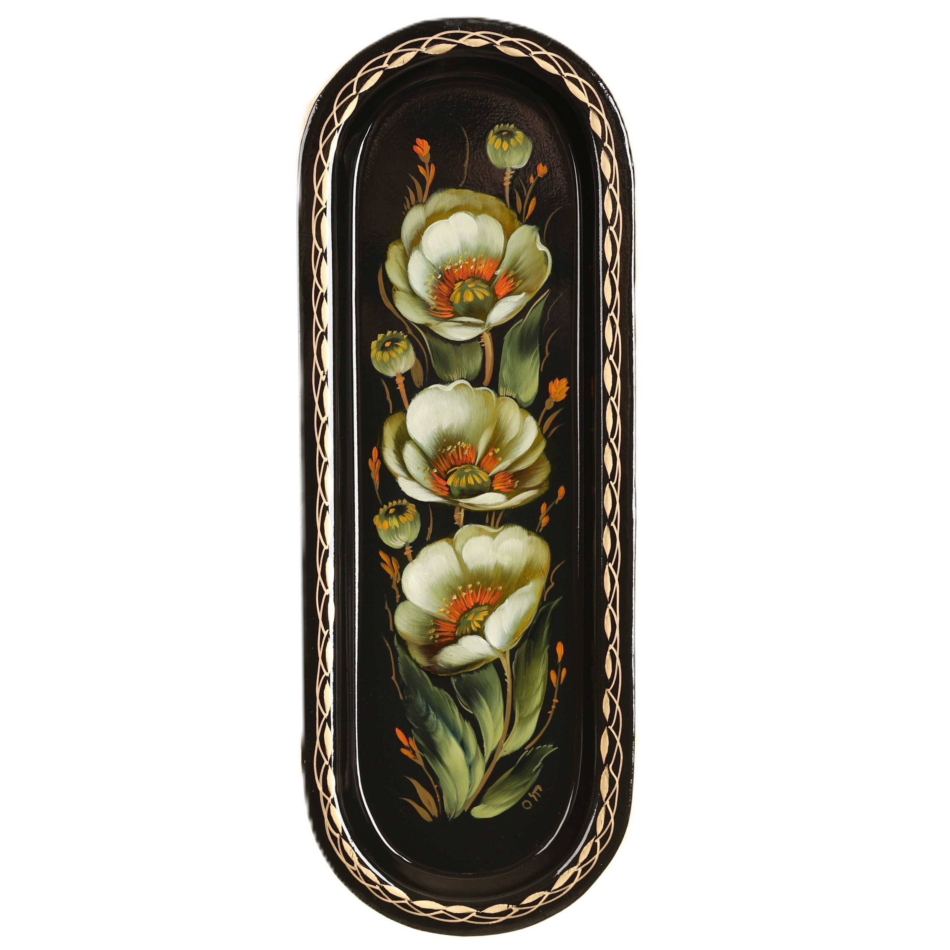 Жостовский поднос декоративный, размер 21х8 см (A4), металлический