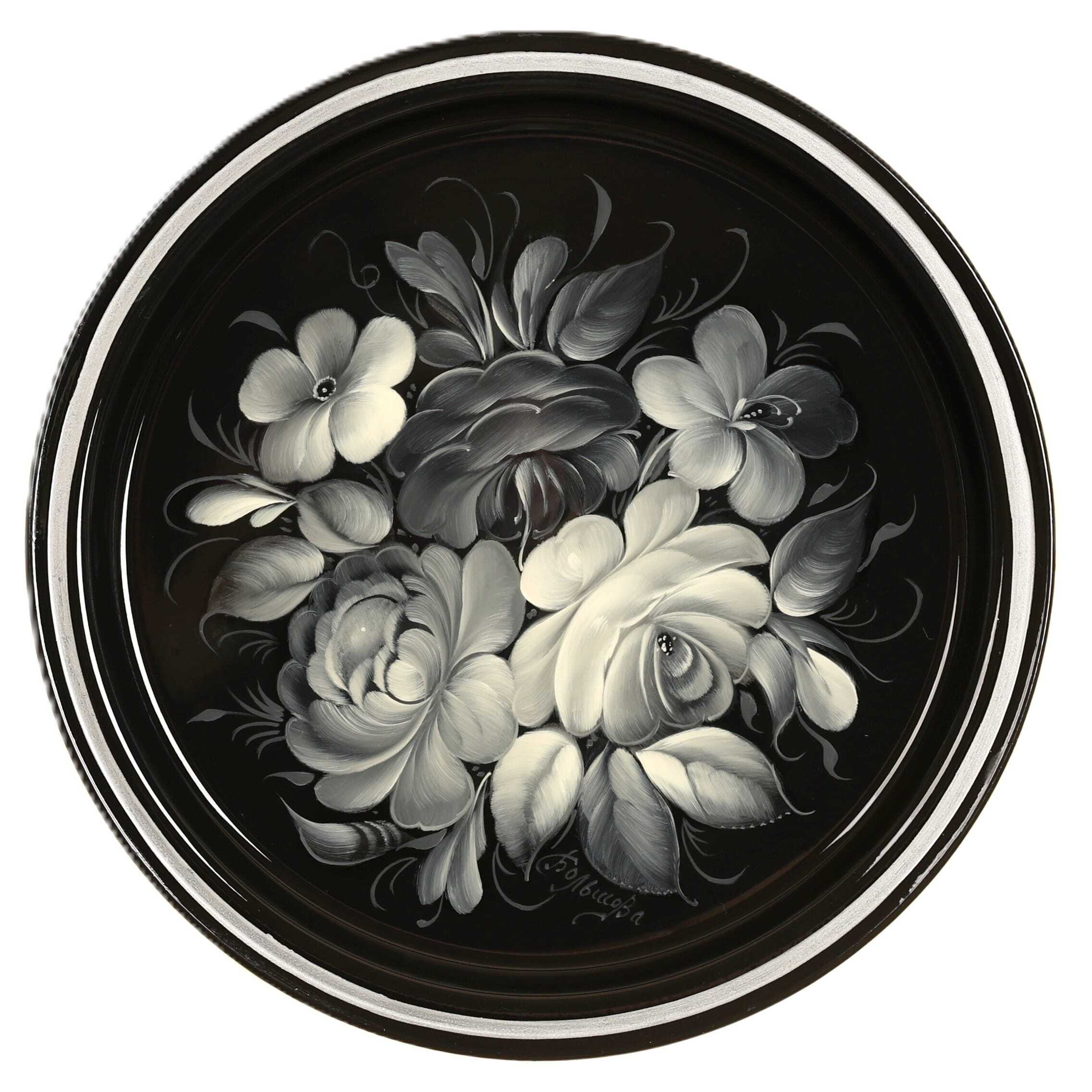 Жостовский поднос A5D271125215, Автор Большова Нина, Материал: Металл, Форма Круглая, Фон Черный, Сюжет Цветы, Размер 22 см, Вес 0.2 кг, В комплекте: Фирменный полиэтиленовый пакет, Производитель: Жостовская фабрика декоративной росписи