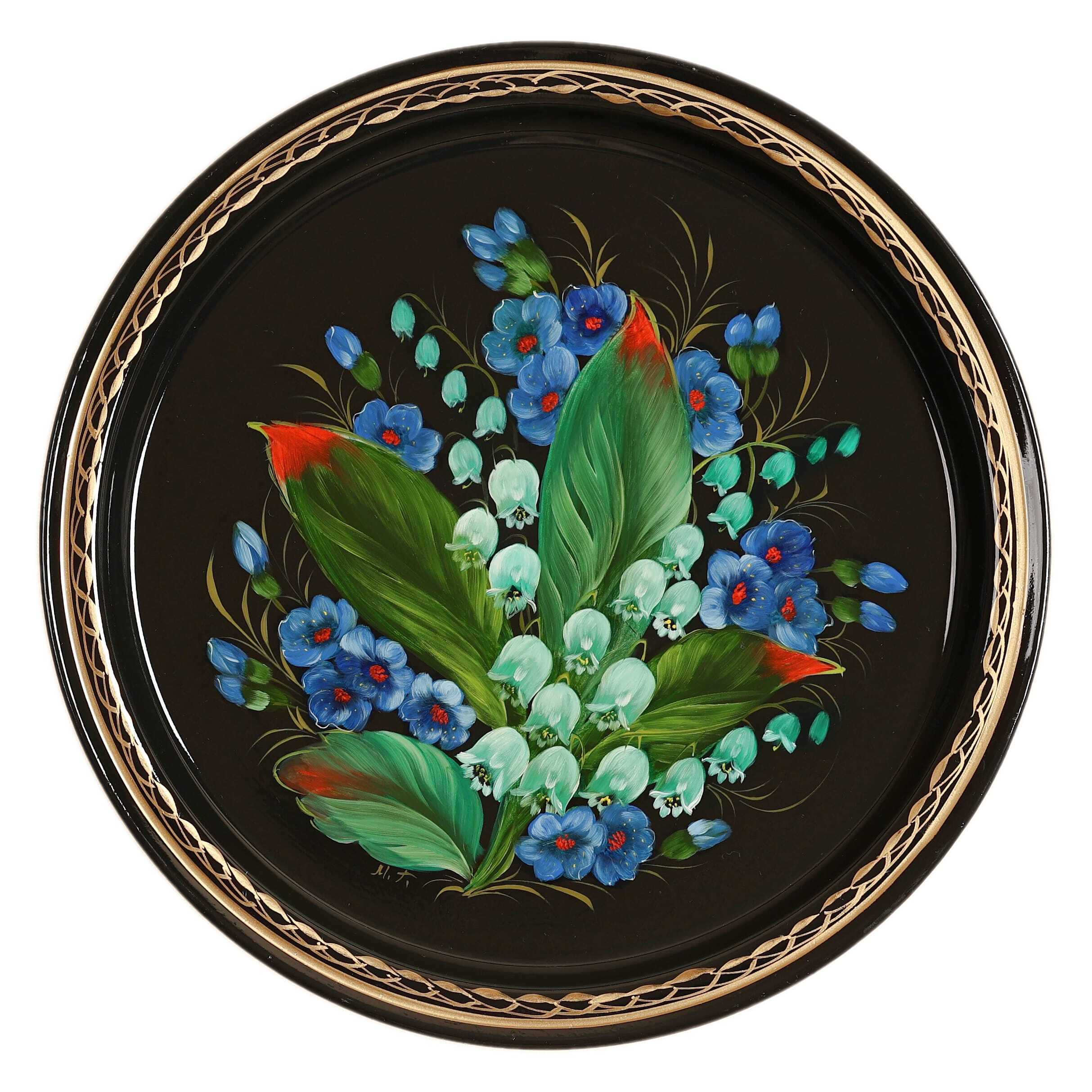 Жостовский поднос A5D290925209, Автор Мошта Галина, Материал: Металл, Форма Круглая, Фон Черный, Сюжет Цветы, Размер 22 см, Вес 0.2 кг, В комплекте: Фирменный полиэтиленовый пакет, Производитель: Жостовская фабрика декоративной росписи