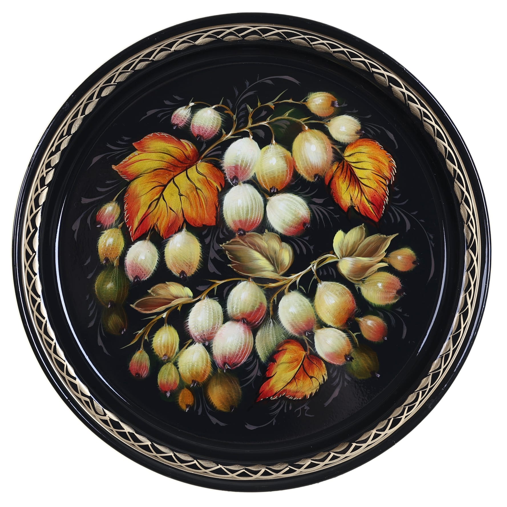 Жостовский поднос A5D020326326, Автор Головина Екатерина, Материал: Металл, Форма Круглая, Фон Черный, Сюжет Ягоды, Размер 22 см, Вес 0.2 кг, В комплекте: Фирменный полиэтиленовый пакет, Производитель: Жостовская фабрика декоративной росписи