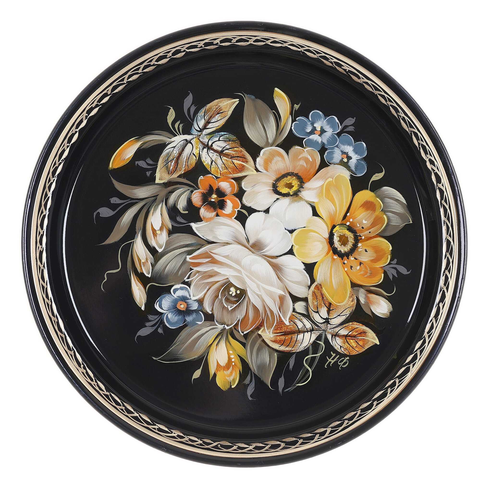 Жостовский поднос A5D210725166, Автор Фролова Наталья, Материал: Металл, Форма Круглая, Фон Черный, Сюжет Цветы, Размер 22 см, Вес 0.2 кг, В комплекте: Фирменный полиэтиленовый пакет, Производитель: Жостовская фабрика декоративной росписи