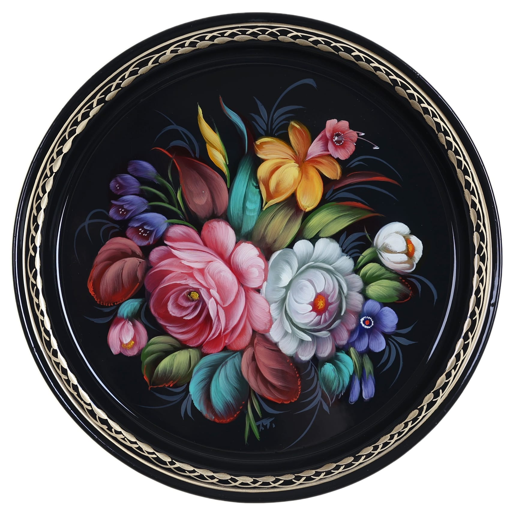 Жостовский поднос A5D020326334, Автор Тихомирова Тамара, Материал: Металл, Форма Круглая, Фон Черный, Сюжет Цветы, Размер 22 см, Вес 0.2 кг, В комплекте: Фирменный полиэтиленовый пакет, Производитель: Жостовская фабрика декоративной росписи