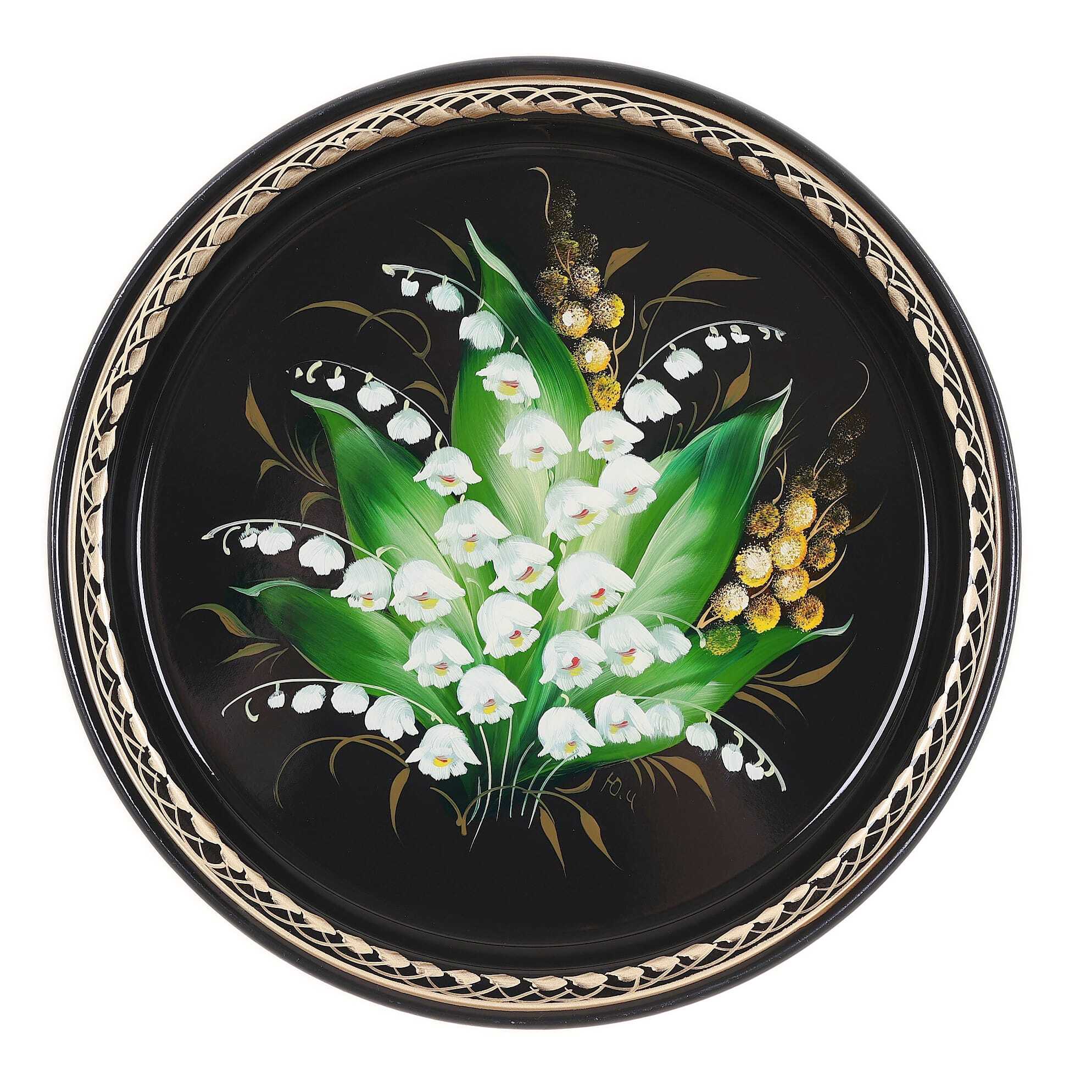 Жостовский поднос A5D210725181, Автор Юрасова Ирина, Материал: Металл, Форма Круглая, Фон Черный, Сюжет Цветы, Размер 22 см, Вес 0.2 кг, В комплекте: Фирменный полиэтиленовый пакет, Производитель: Жостовская фабрика декоративной росписи