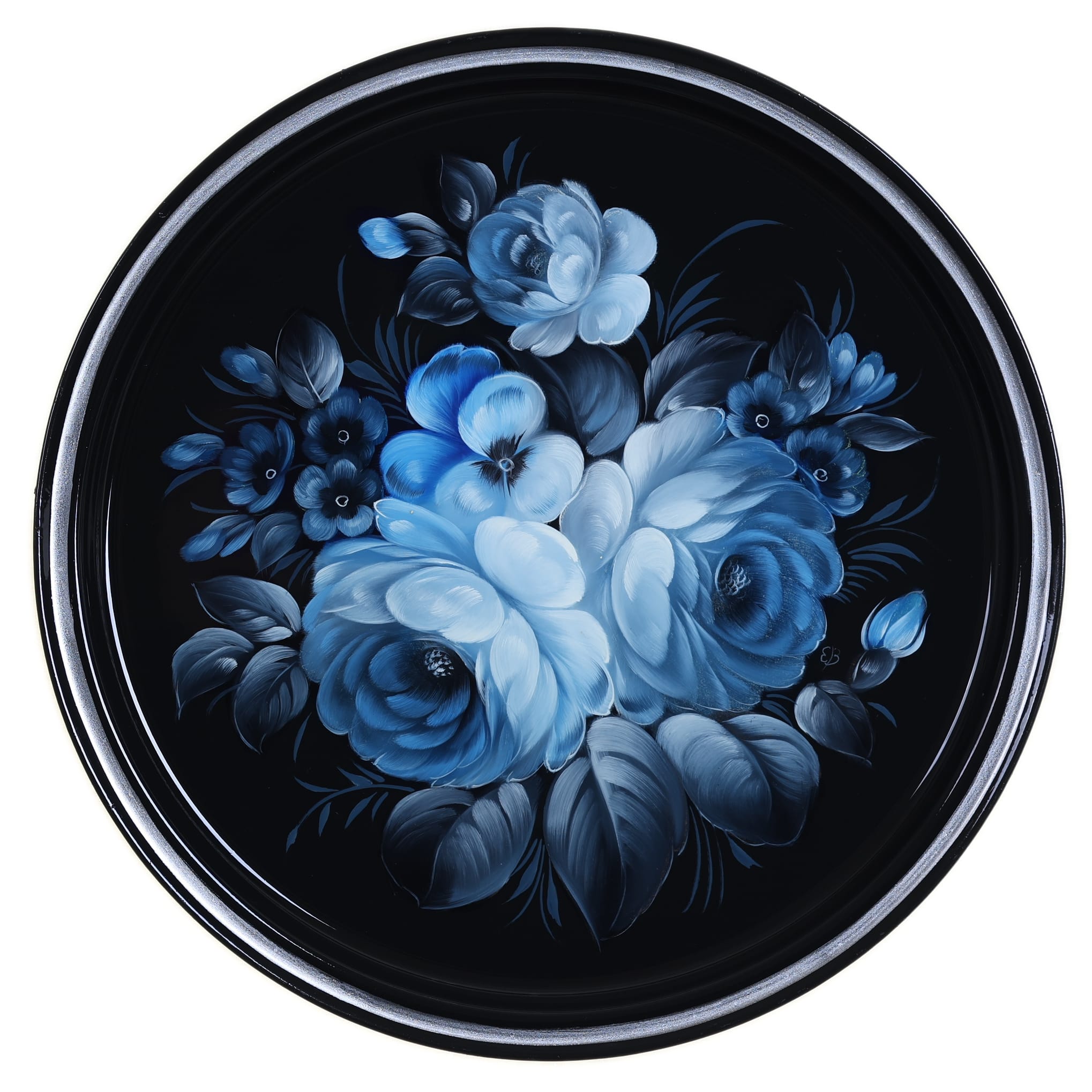 Жостовский поднос A9D29012675, Автор Васильева Екатерина, Материал: Металл, Форма Круглая, Фон Черный, Сюжет Цветы, Размер 30 см, Вес 0.3 кг, В комплекте: Фирменный полиэтиленовый пакет, Производитель: Жостовская фабрика декоративной росписи
