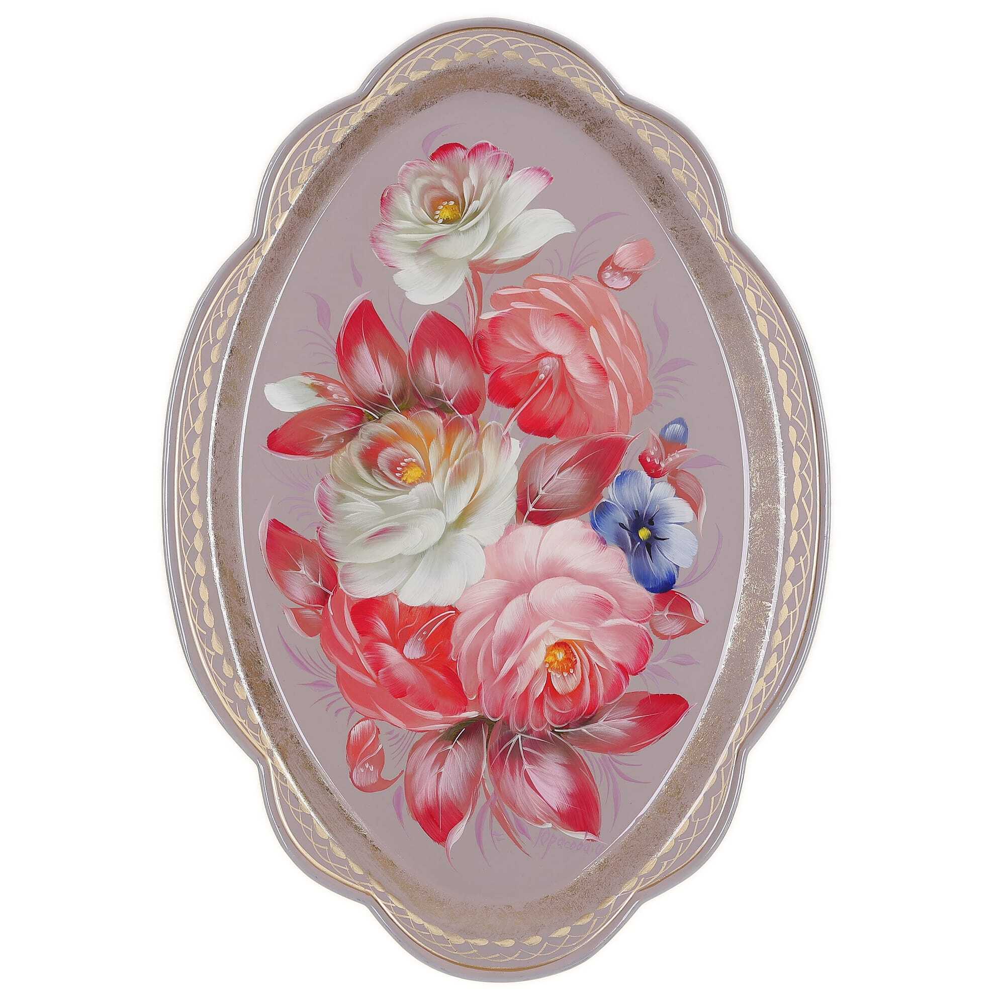 Жостовский поднос A11D210725141, Автор Юрасова Ирина, Материал: Металл, Форма Фигурная, Фон Цветной, Сюжет Цветы, Размер 32х22 см, Вес 0.35 кг, В комплекте: Фирменный полиэтиленовый пакет, Производитель: Жостовская фабрика декоративной росписи