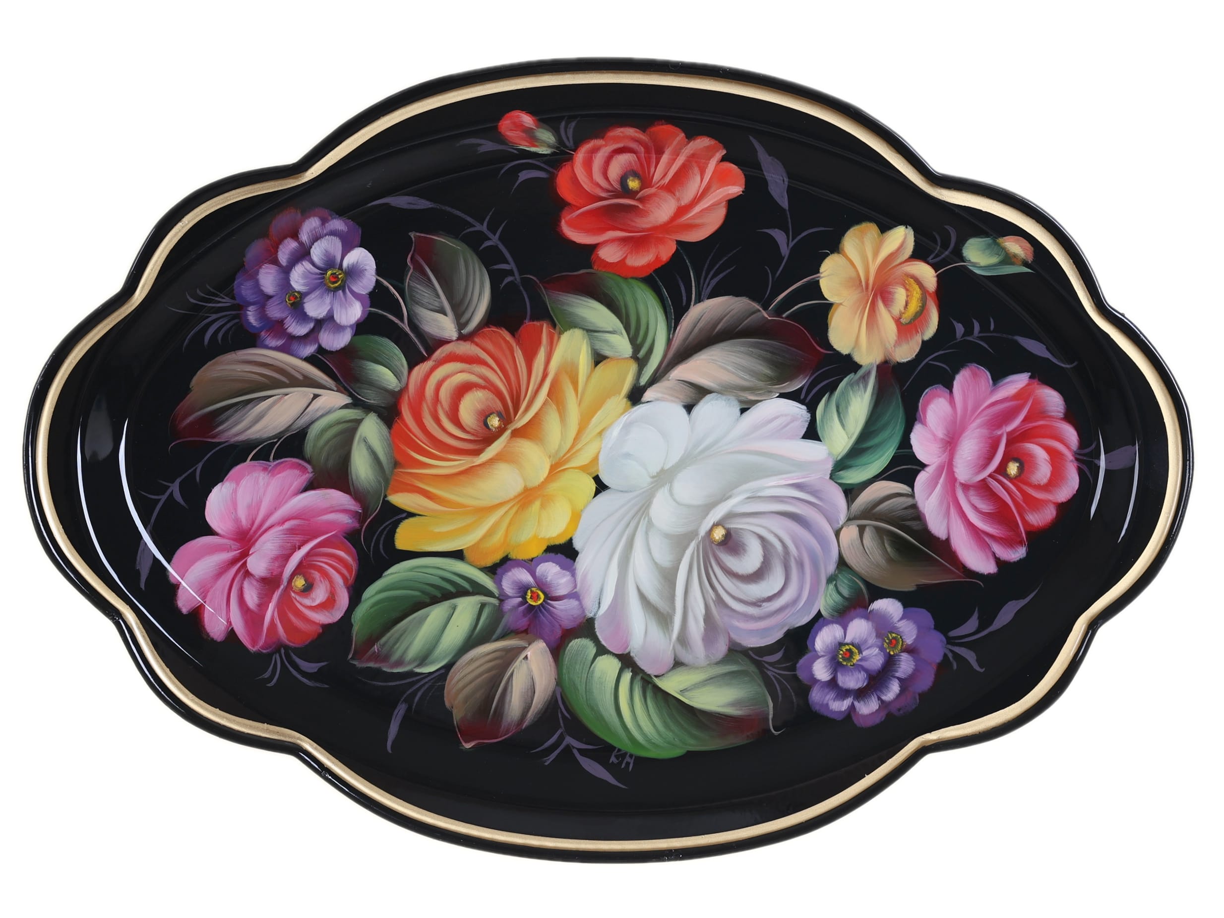 Жостовский поднос A11D02032688, Автор Климова Наталья, Материал: Металл, Форма Фигурная, Фон Черный, Сюжет Цветы, Размер 32х22 см, Вес 0.35 кг, В комплекте: Фирменный полиэтиленовый пакет, Производитель: Жостовская фабрика декоративной росписи