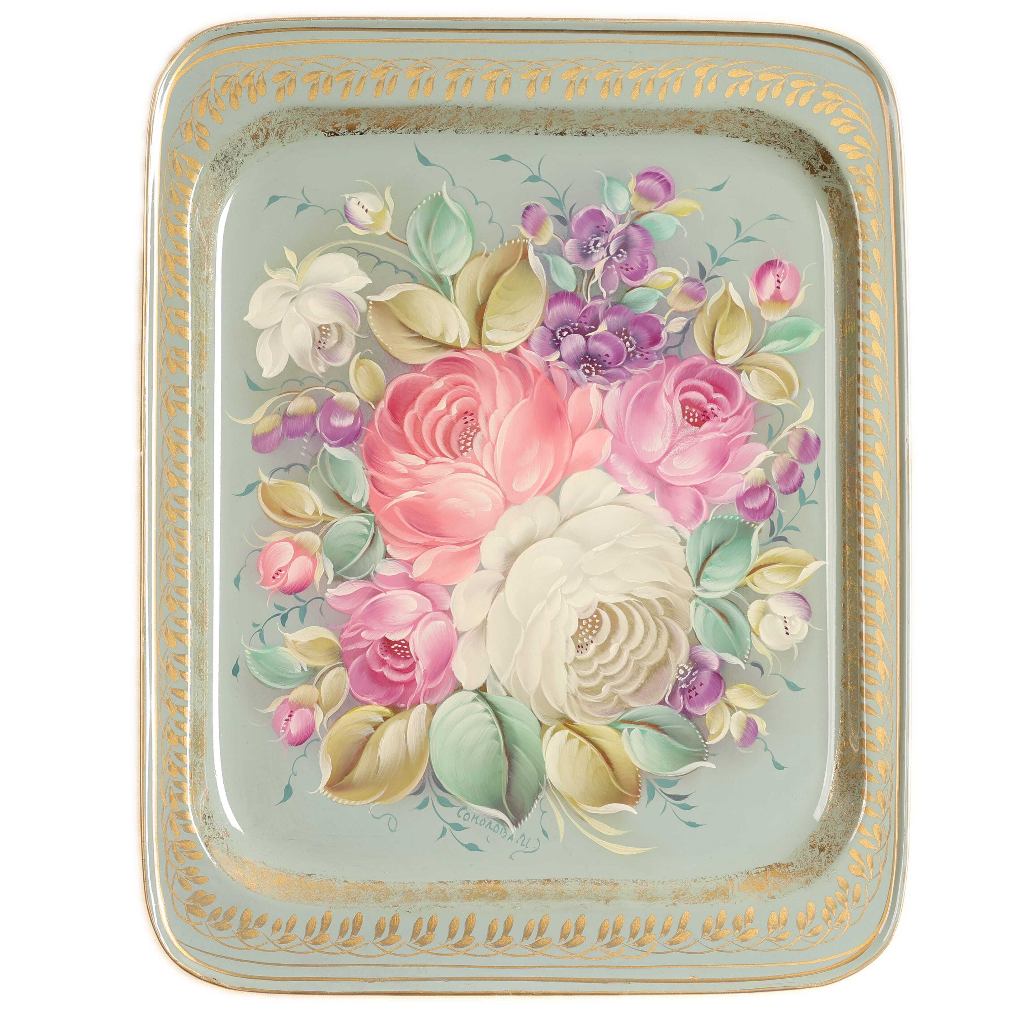 Жостовский поднос A13D290925125, Автор Соколова Ирина, Материал: Металл, Форма Прямоугольная, Фон Светлый, Сюжет Цветы, Размер 33х26 см, Вес 0.37 кг, В комплекте: Фирменный полиэтиленовый пакет, Производитель: Жостовская фабрика декоративной росписи