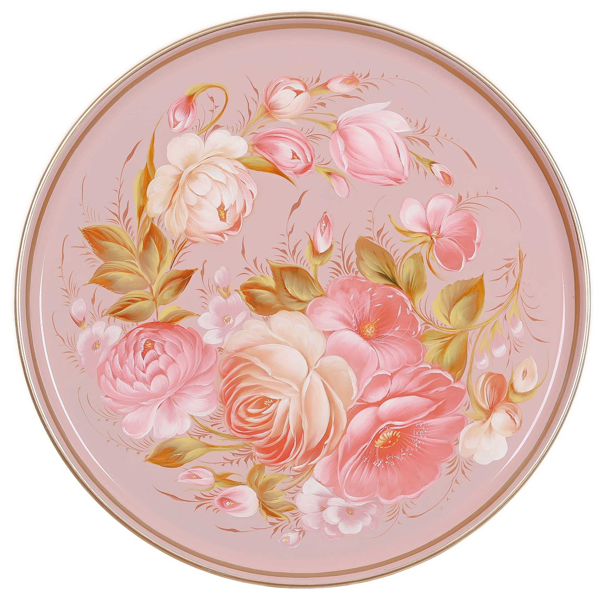Жостовский поднос A14D21072576, Автор Головина Екатерина, Материал: Металл, Форма Круглая, Фон Цветной, Сюжет Цветы##Птицы, Размер 37 см, Вес 0.76 кг, В комплекте: Фирменный полиэтиленовый пакет, Производитель: Жостовская фабрика декоративной росписи