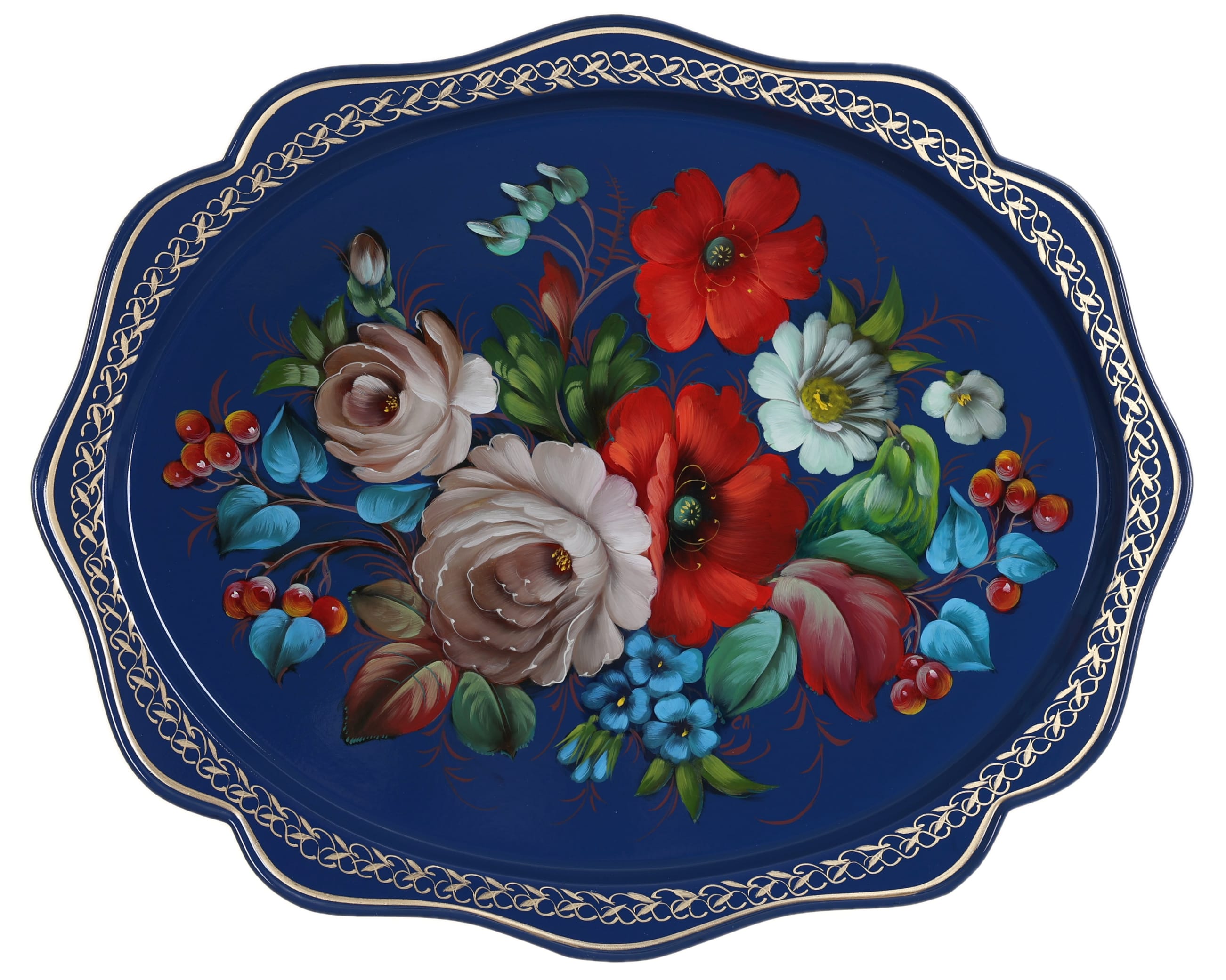 Жостовский поднос A15D020326195, Автор Семичева Лилия, Материал: Металл, Форма Фигурная, Фон Цветной, Сюжет Цветы, Размер 38х30 см, Вес 0.41 кг, В комплекте: Фирменный полиэтиленовый пакет, Производитель: Жостовская фабрика декоративной росписи