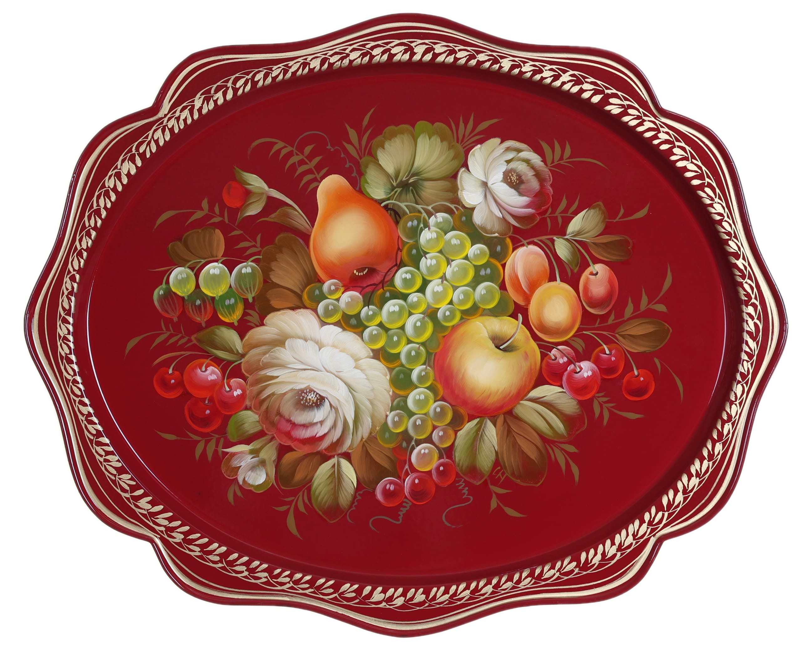 Жостовский поднос A15D020326203, Автор Соломатина Нелли, Материал: Металл, Форма Фигурная, Фон Цветной, Сюжет Фрукты, Размер 38х30 см, Вес 0.41 кг, В комплекте: Фирменный полиэтиленовый пакет, Производитель: Жостовская фабрика декоративной росписи